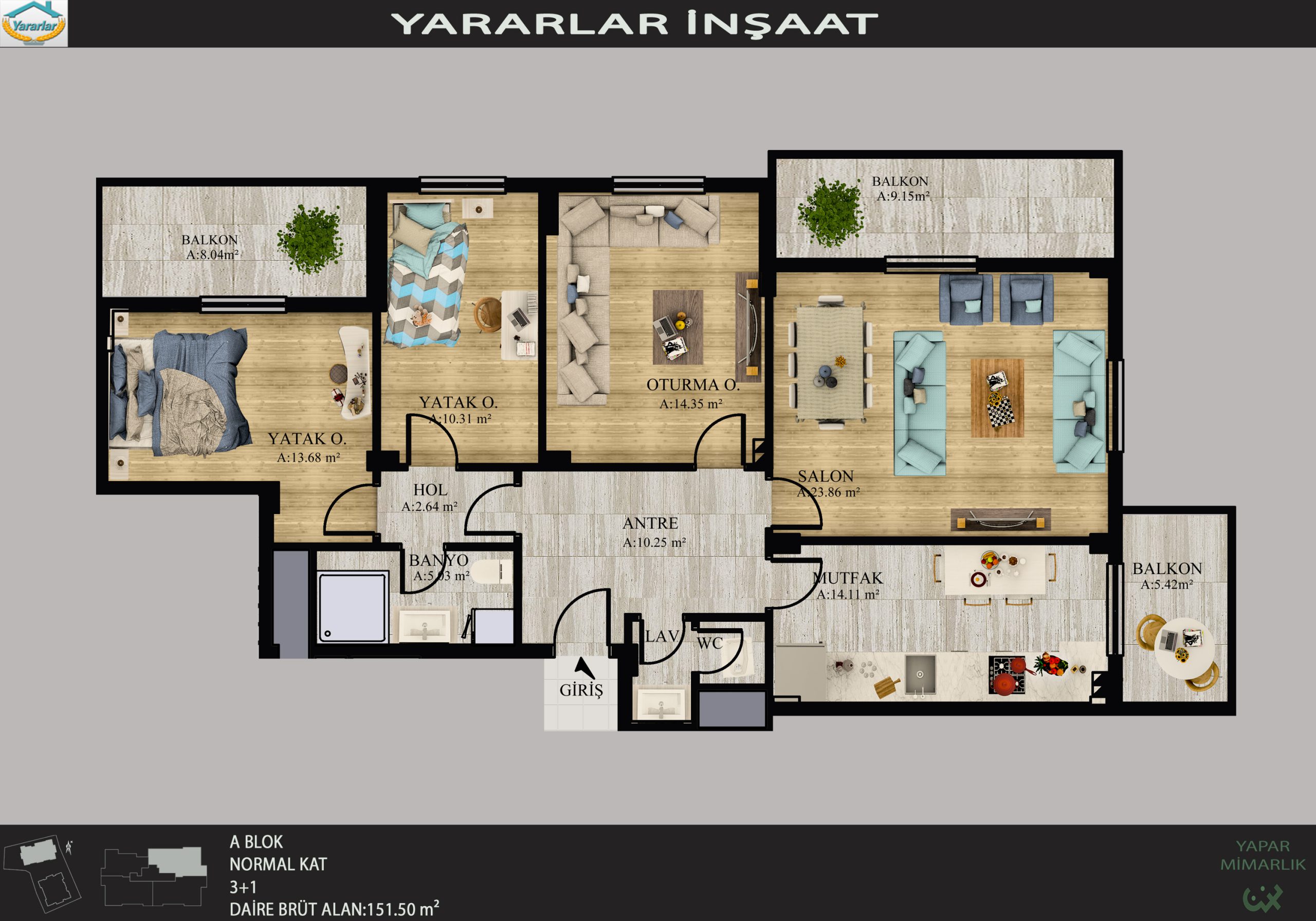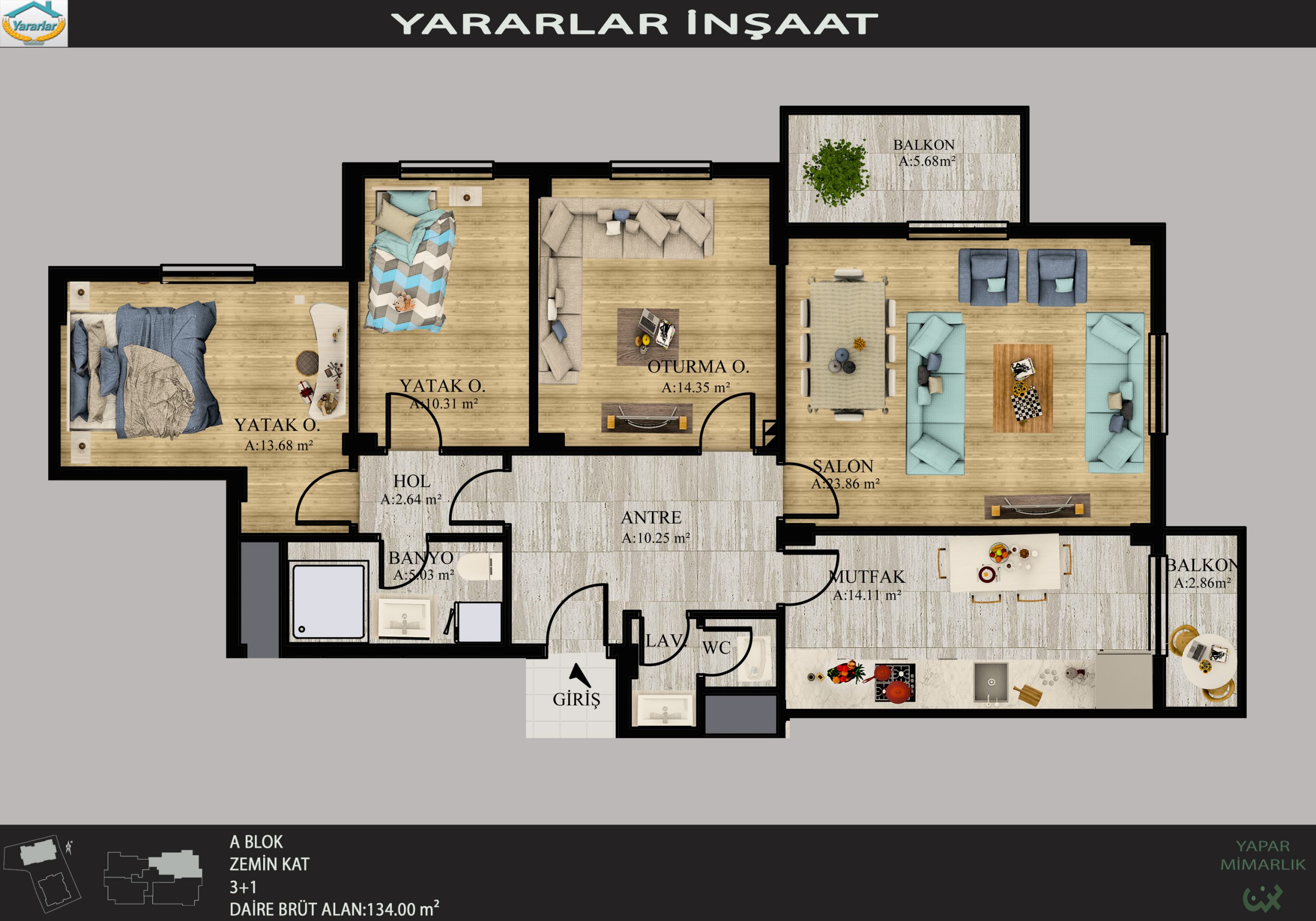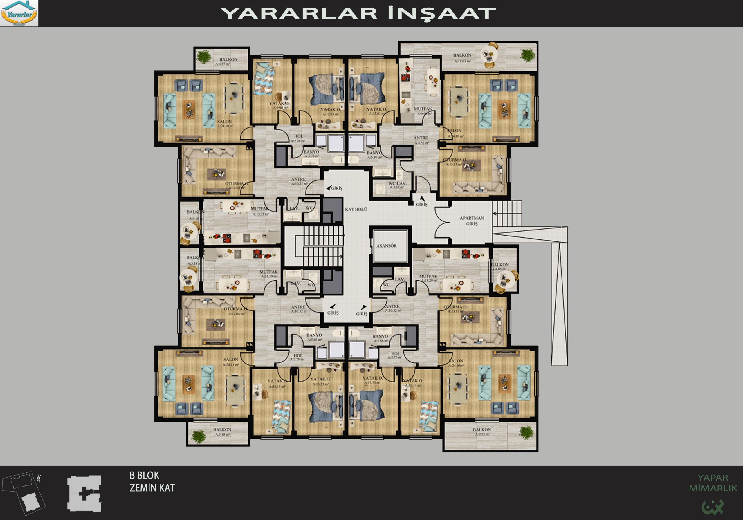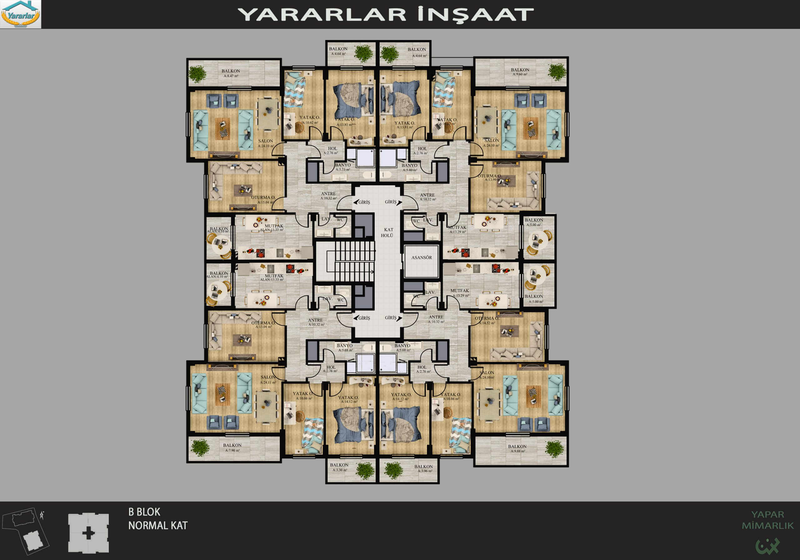 Konya’da, Yararlar İnşaat olarak İşleyen Okur A-B Blokları projesini gurur ve titizlikle tamamlamış bulunmaktan dolayı büyük mutluluk ve gurur duyuyoruz. Bu projemiz, modern yaşamın ihtiyaçlarına uygun, kalite ve konforun bir araya geldiği bir yaşam alanı sunuyor.